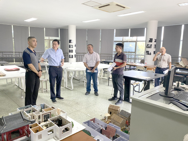 8月30日下午,市财政局领导张庆、资产处处长张土根、朱渊良一行三人来我校调研实训基地建设。校党委书记徐须实、学校办公室、资产与实训管理处、图书馆、艺术设计学院相关负责人陪同调研。