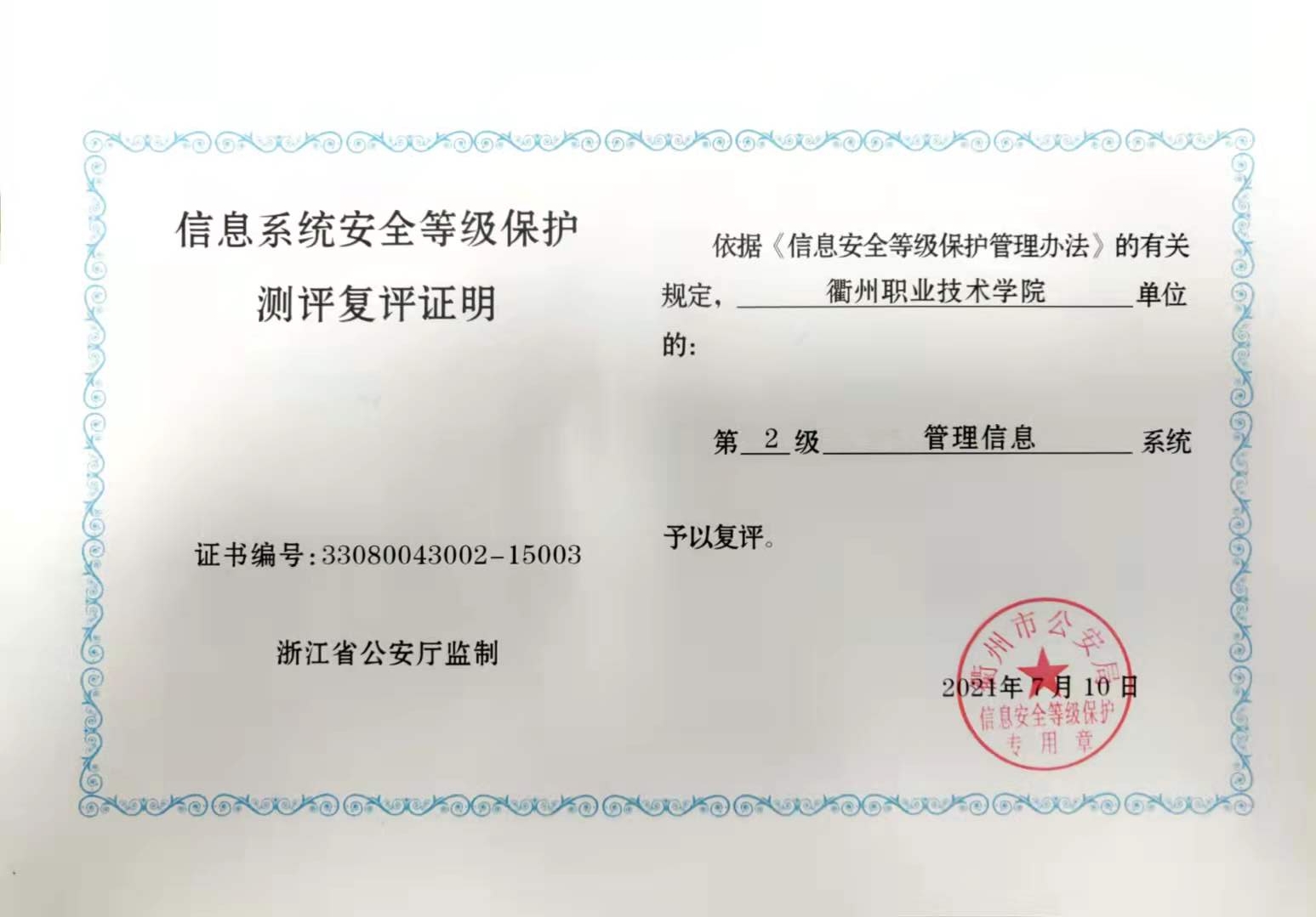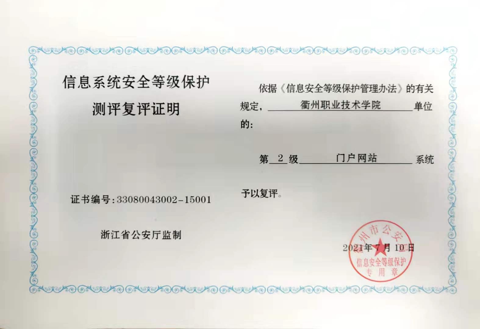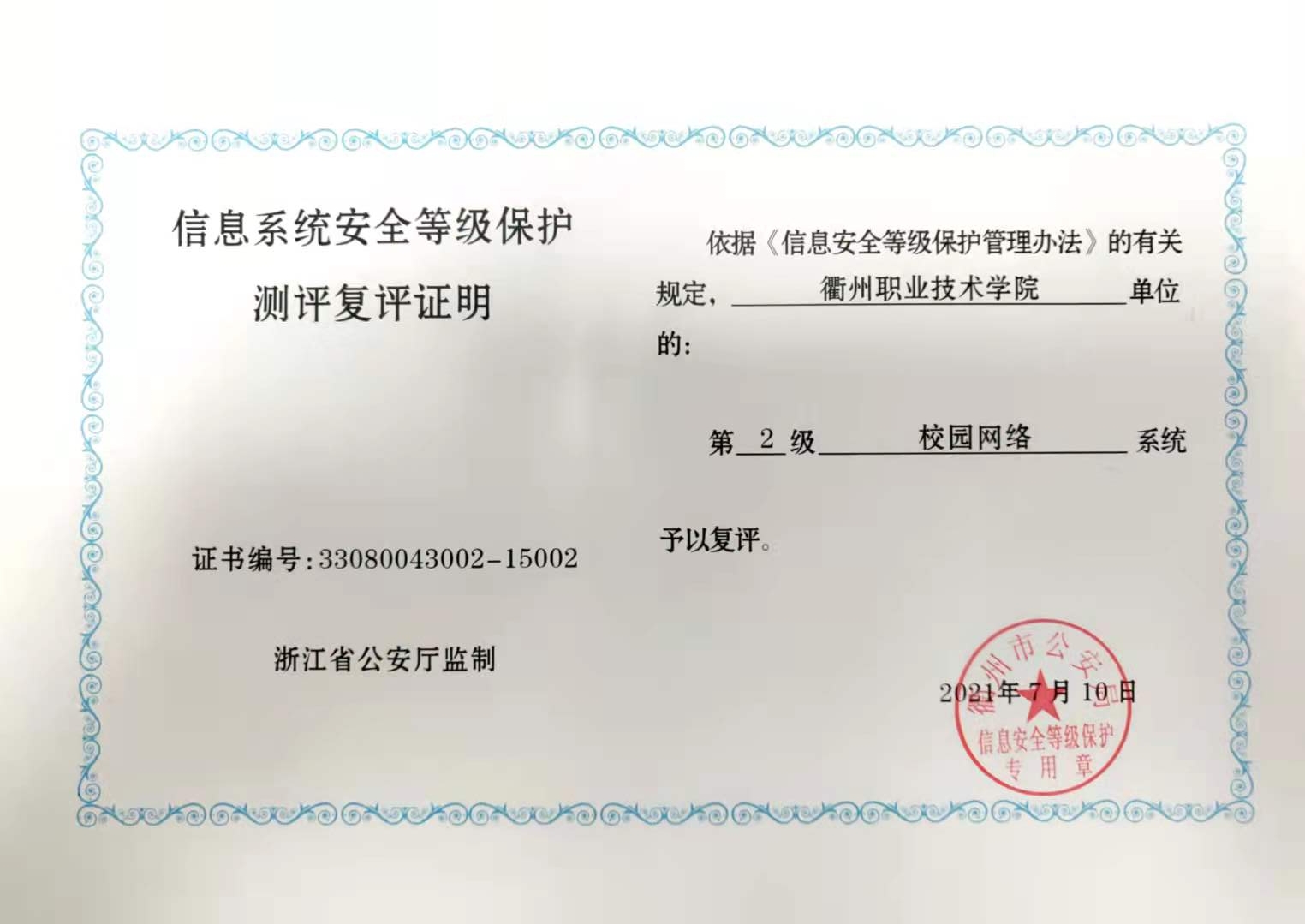 按照《中华人民共和国网络安全法》和《网络安全等级保护条例》要求,根据近年来我校信息系统变化,数字校园建设中心对所有运行的重要信息系统进行了重新梳理,委托第三方于6月25日至7月8日对门户网站系统、校园网络系统和管理信息系统进行了安全等级保护测评,并顺利通过2级测评复评。