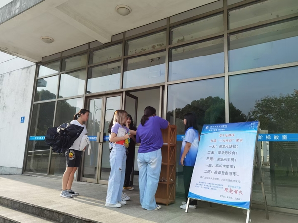 开学第一天,学生处举办“学风三课堂”新学期早起有礼活动。