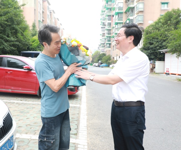 根据《浙江省教育厅办公室转发教育部关于做好庆祝2021年教师节有关工作的通知》要求,9月7日上午,学校组织开展2021年教师节走访慰问活动。本次走访慰问的对象为陈民新、许金友、马文龙和周明安等4位名优教师。校党委书记徐须实,校党委副书记、校长吕延文,校党委副书记王东升,副校长何百通和组织部部长徐浪静参加了走访慰问活动。