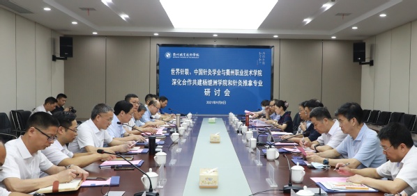 世界针联、中国针灸学会有关专家就共建杨继洲学院和针灸推拿专业提出了许多宝贵意见。副校长何百通主持座谈会。