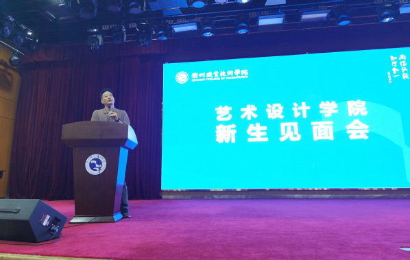 叶云龙院长发表致辞。首先欢迎新同学加入到艺术设计学院大家庭。希望同学们阳光、自信、好学,以从容心态面对新的人生场景,不负青春,健康成长。