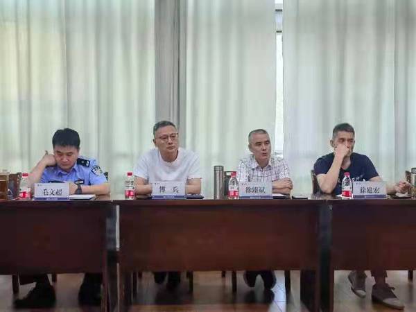 徐臻斌充分肯定了我校在思想政治教育、反邪教、反诈等方面的工作,希望学校继续高度重视思想政治教育工作,坚持系统思维,整体推进平安校园建设工作。