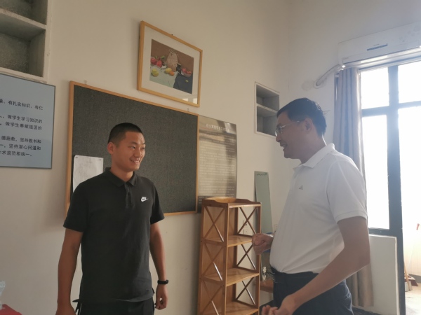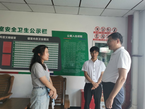 王书记深入每栋公寓,查看了公寓辅导员的住宿情况,询问了他们在生活、学习、工作中遇到的困难,认真听取他们在工作实践中的想法,肯定了住公寓辅导员们一直以来的辛勤工作,鼓励他们要不忘初心,砥砺前行。