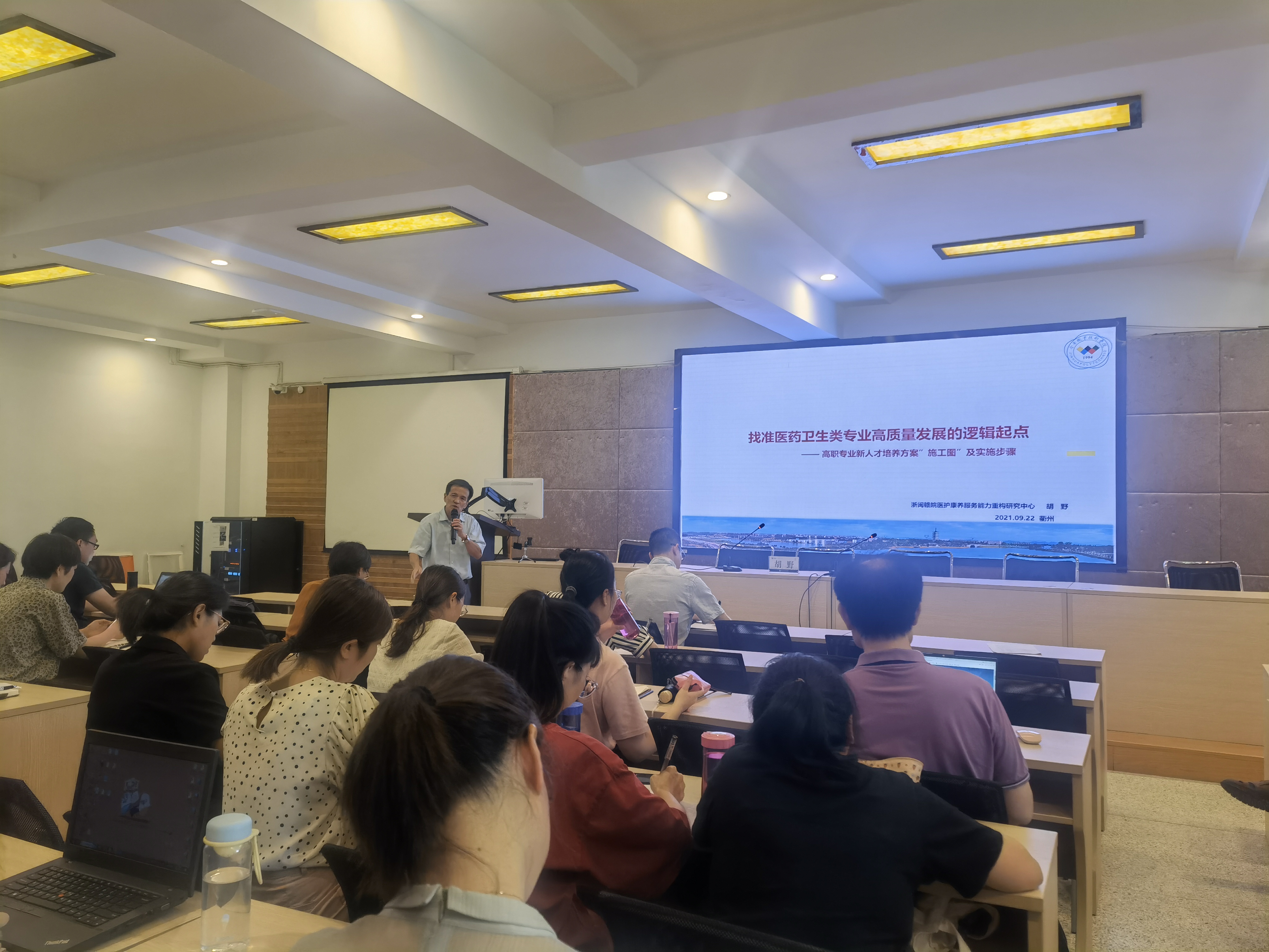 9月22日下午13时30分,在医学实训楼多功能厅举行医护康养专业群集中教研活动,邀请医护康养服务能力重构研究中心主任胡野教授作专题讲座,安排2021年教学建设项目开题报告,会议由毛翠老师主持,医学院全体教师参加会议。