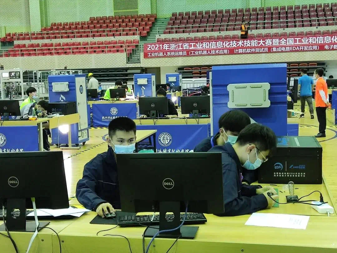 10月11日-12日,2021年浙江省工业和信息化技术技能大赛暨全国工业和信息化技术技能大赛选拔赛在杭州科技职业技术学院举行,本次大赛设置了计算机软件测试员(集成电EDA 开发应用)、电子数据取证分析师(工业大数据算法)和工业机器人系统运维员(工业机器人技术应用)三个赛项,共吸引全省60家单位113支队伍参赛。