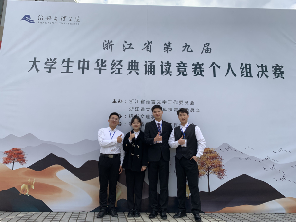 2021年10月16-17日浙江省第九届大学生中华经典诵读竞赛决赛在绍兴文理学院顺利落幕。经过激烈角逐,在专科组比赛中,我校机电学院19机电2班许智超(倪剑、张皓鸣老师指导)、经济管理学院20连锁1班吴佳芯(张皓鸣、马超老师指导)两位同学喜获一等奖,这是我校自参赛以来取得的重大突破!