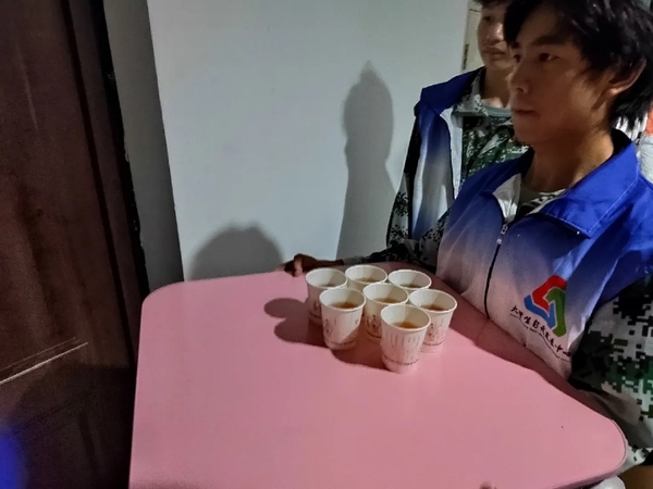 节目中下起了绵绵细雨,为了预防学弟学妹们感冒,学长学姐们准备了红糖水分发到每一间新生寝室,暖心的举动让新生们感动不已,“学长学姐们专门精心准备的演出给紧张的军训生活带来了不少欢乐和温暖,还给我们送来了红糖水,让我们在初来乍到的校园中不再感到陌生,很亲切也很感动。”