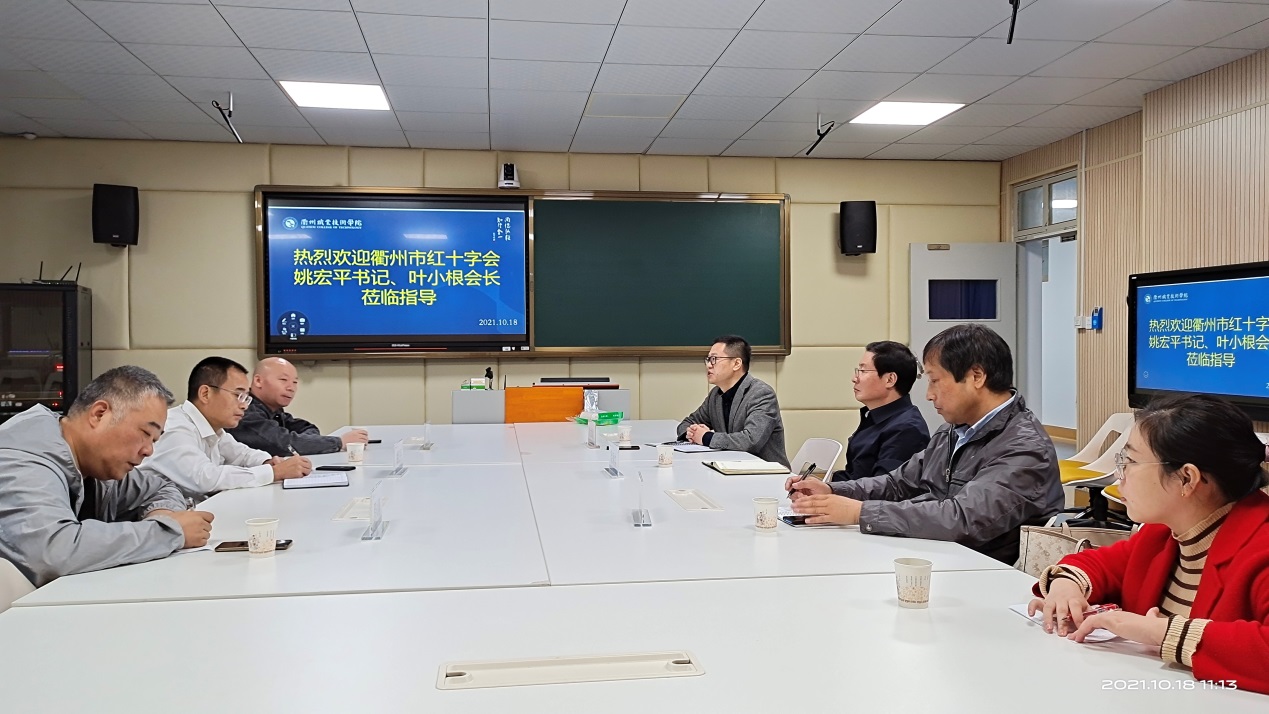 10月18日,衢州市红十字会姚宏平书记一行来我校,就创建“红十字示范校”、救护培训等工作开展对接。校党委书记徐须实、医学院院长姚水洪等陪同。