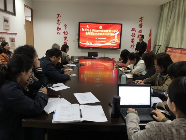 10月20日下午,公共教学部党支部在803会议室集中学习贯彻习近平总书记给全国高校黄大年式教师团队代表重要回信精神。公共教学部党支部书记徐云青主持学习会,部门全体成员参加本次学习。