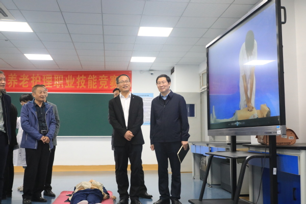 调研组先后走访了我校继续教育学院、信息工程学院、医学院、艺术设计学院、图书馆1+X考证中心,实地调研我校职业技能培训的相关项目、办学规模和办学成效。