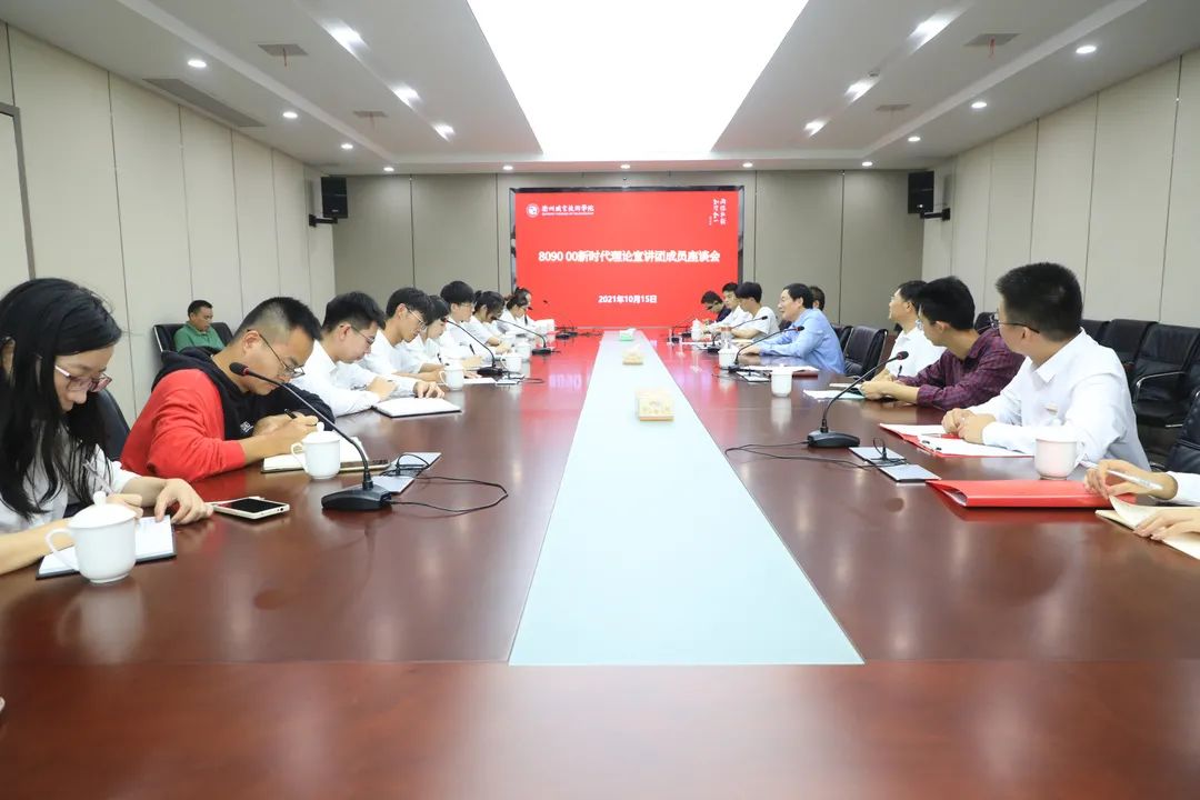 在8090、00新时代理论宣讲团成员座谈会上,宣讲团成员骆黎阳、顾霓桑先后作了发言。校党委书记徐须实高度肯定了我校8090新时代理论宣讲团成立一年以来取得的骄人成绩,向00新时代理论宣讲团的成立表示热烈祝贺。