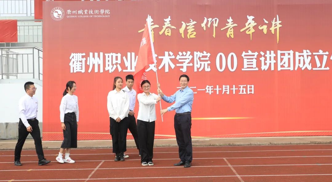 校党委书记徐须实为00新时代理论宣讲团授旗。校党委副书记王东升为00新时代理论宣讲团导师骆黎阳、贾晨光、徐佩玉颁发聘书。