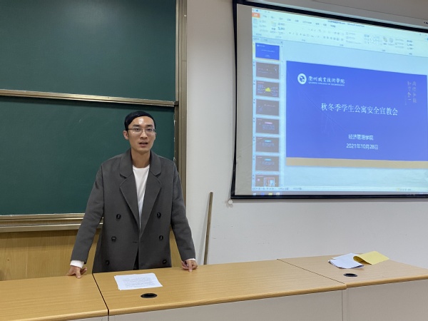 10月28日,经济管理学院在阶东3-4成功举办了2021年经济管理学院秋冬季学生公寓安全宣教会。本次培训旨在预防各种“寝室安全问题”,排除安全隐患,强化安全意识。提升寝室长队伍管理能力。
