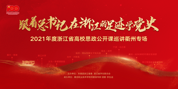 “跟着总书记在浙江的足迹学党史”浙江省高校思政公开课巡讲以2021年度浙江省高校思政微课大赛为基础,旨在深入学习贯彻习近平新时代中国特色社会主义思想,贯彻落实习近平总书记在学校思想政治理论课教师座谈会上的重要讲话精神,引导广大青年团员学史明理、学史增信、学史崇德、学史力行,从中国共产党的历史中汲取奋斗的力量。