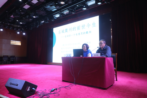 11月10日下午,我校尚德讲吧特邀高级编辑、一级作家、二级教授许彤为学生代表带来了一场主题为《名城衢州的前世今生——告诉你一个有意思的衢州》的专题讲座,讲座由党委委员、宣传部(统战部、教师工作部)部长孔庆红主持。