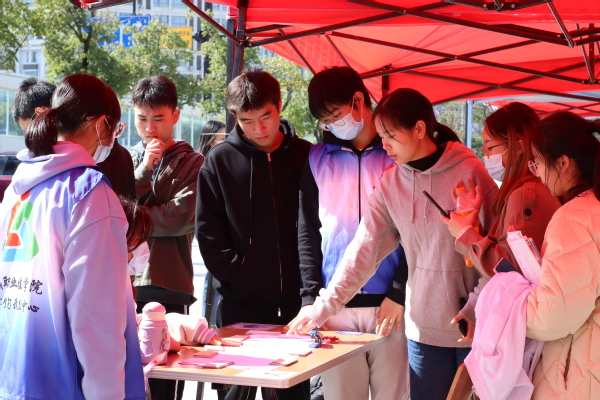 本次活动涉及班级学风建设、学风座谈、榜样引领、朋辈引领学风大讨论等11项活动,可以班级、宿舍、跨学院组团参与,也可个人参与,活动将持续一个月。本次在食堂门口提前开展报名宣传的就是涉及“读、写、说”的三项活动,分别是公寓管理科主办的品牌活——“相约九点阅读时光”,学生教育管理科、图书馆主办的“字正腔圆——汉字书写大赛”,公共教学部主办,学工部、团委协办的“字正腔圆——经典篇目诵读表演赛”。