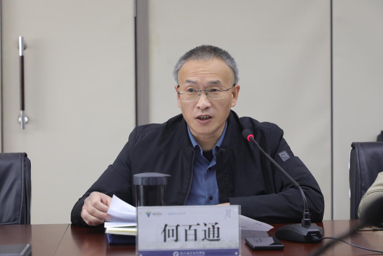 副校长何百通从学校基本情况、实习工作情况、实习管理存在的问题及改进措施等方面汇报了我校学生实习管理工作。