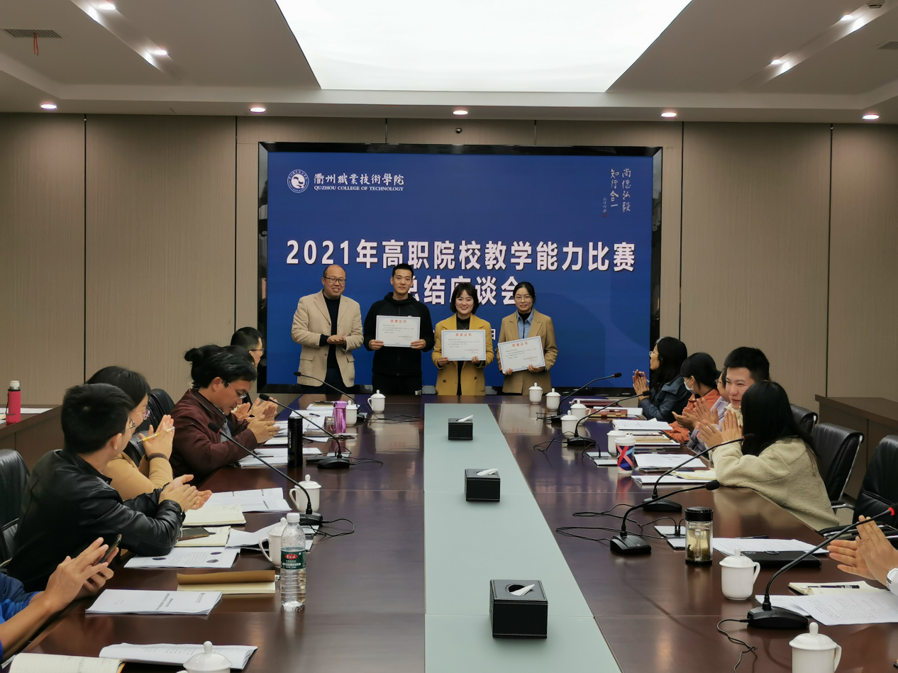 会上表彰 机电工程学院金鑫君团队、医学院冯敬骞团队、医学院毛翠团队和艺术设计学院林晓丽团队4个2021年教学能力比赛省赛获奖团队。