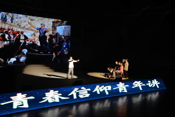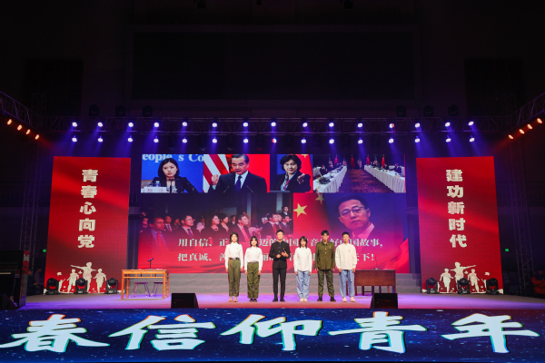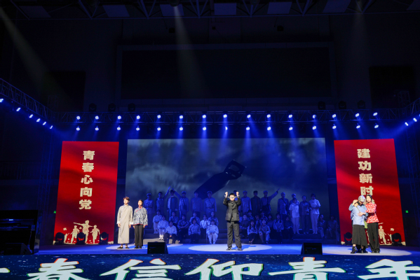 校“8090”新时代理论宣讲员、艺术设计学院张皓鸣团队带来的作品《声音中的党史》,为大家讲述了从延安新华广播,到东方红一号卫星发射,再到新时代的中国声音,展现大国的责任与担当。文化旅游学院带来的音乐剧《燎原》,展现了中国共产党人播撒信仰火种,点亮真理强光的坚定信念。