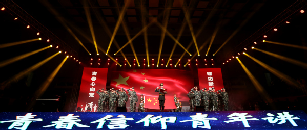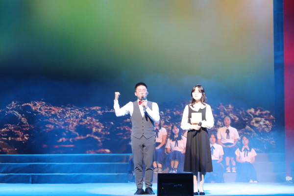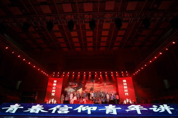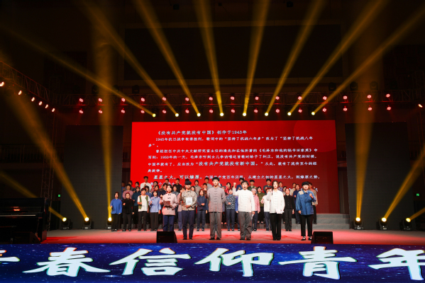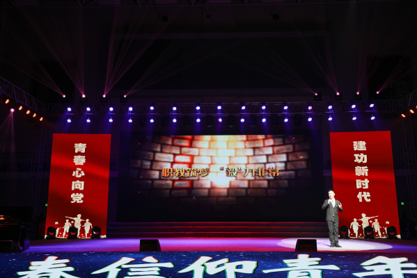 校“8090”新时代理论宣讲员、信息工程学院骆黎阳团队带来的理论宣讲《九仟采风薪火相传》讲述了“九仟”采风团开展了百人话百年专题采风的活动历程,带领青年学子在与老党员的对话中了解中国共产党的苦难与辉煌,传承党的荣光与精神。“我和我的祖国,一刻也不能分割;无论我走到哪里,都流出一首赞歌……”全场师生合唱《我和我的祖国》,再一次激荡起全场观众的爱国情怀,将晚会推向高潮,同时也昭示着十八而志的青春扬帆起航!