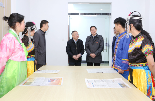傅根友一行实地走访了我校继续教育学院、医学院母婴护理实训室等地,并看望慰问了我校部分民族学生代表,同他们亲切交流。