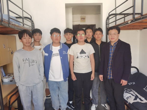 11月26日中午,后勤保卫处党支部全体党员走进联系寝室开展党的十九届六中全会精神宣讲活动。