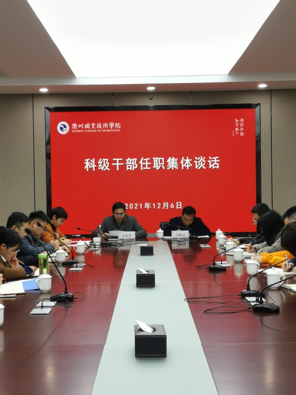 12月6日下午,我校举行了科级干部任职集体谈话。校党委副书记王东升、纪委书记方焕云进行集体谈话,会议由校党委委员、组织部部长徐浪静主持。