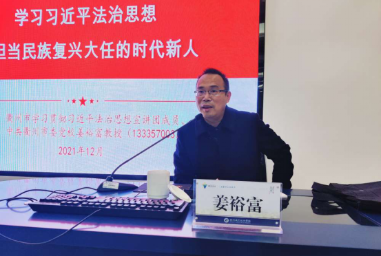 2021年12月8日下午,法务与规划发展处邀请中共衢州市委党校教授、衢州市学习贯彻习近平法治思想宣讲团成员姜裕富博士来我校开展习近平法治思想主题宣讲报告会。报告会由法务与规划发展处副处长张燕主持,各二级学院学生入党积极分子代表以及辅导员代表参加了此次报告会。