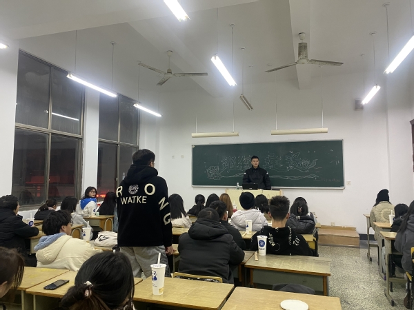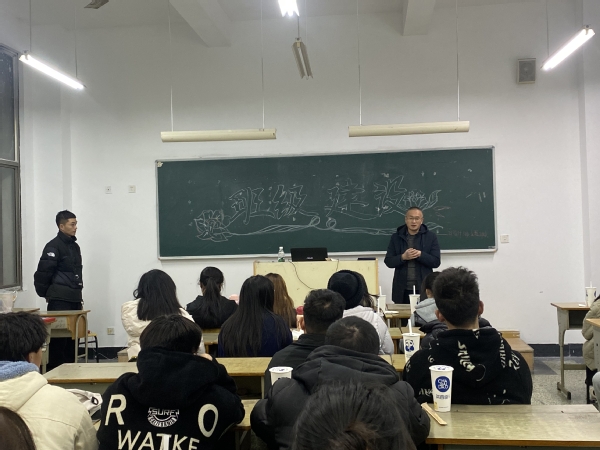 此次班会的目的是要明确班级建设主体、提升建设能力;加强学风建设,营造优良班级环境;完善规章制度,培养同学们良好的行为规范。首先,本班9 名班委向同学们进行这一个学期的述职,讲述工作期间所遇到的问题以及今后的工作规划。其次,为了严肃考风考纪,树立诚信考试观念,充分备考,学习委员赵依莎同学宣读了《诚信考试承诺书》;最后,由退役军人林金潮同学分享其学习心得以及他的人生规划,提醒同学们要树立学习目标并要为之不懈努力。