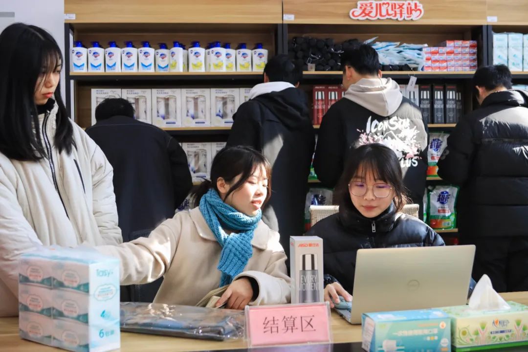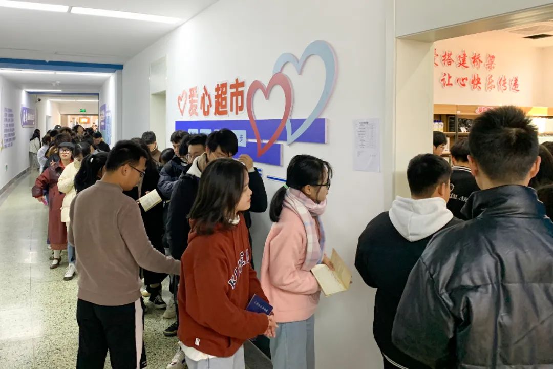 在2021年的最后一天,“爱心超市”货架上的近600件物品在3个小时内,就被99位同学兑换一空,累计兑换志愿服务时长达8455小时。