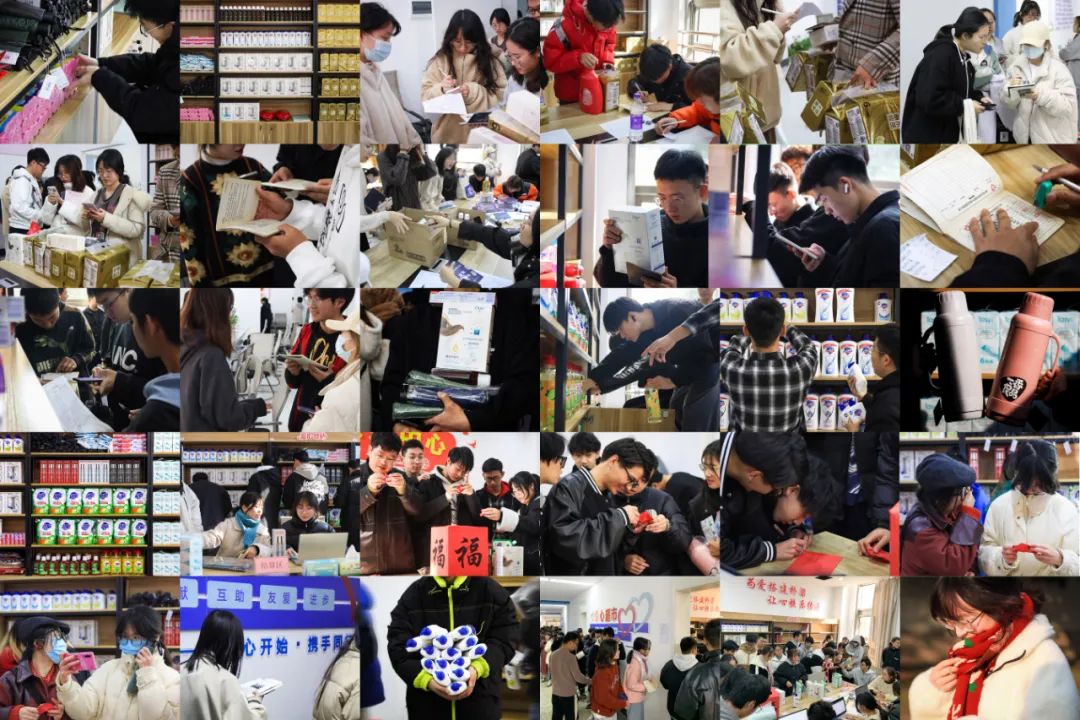 同学们在打开自己专属的“新年爱心”时,有人得到了暖心的跨年祝福,有人写下了2022年的目标和心愿,有人得到了党史、校情、风俗等知识,也有人现场打电话给自己的爸爸妈妈,对他们说:“我爱你!”开心、羞涩、紧张、激动……所有这些美好瞬间在短短的一下午时间里无数次上演,使小小的超市内气氛不断升温,点燃着在场所有人的热情,使人深刻感受“爱心”奉献后的激动人心和催人奋进。