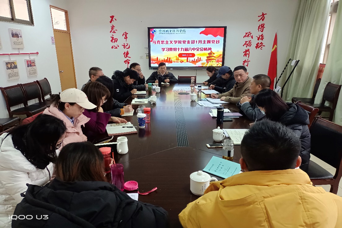 为加深对十九届六中全会精神的理解和把握,教育引导党员教师进一步坚定理想信念,锤炼党性修养,1月13日上午,马克思主义学院党支部在行政楼801会议室召开“学习贯彻十九届六中全会精神”主题党日活动,特邀浙江理工大学马克思主义学院院长渠长根教授作专题宣讲,支部书记邵方益主持会议,全体党员教师参会,校党委委员、宣传部部长孔庆红到会指导。