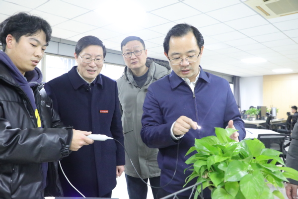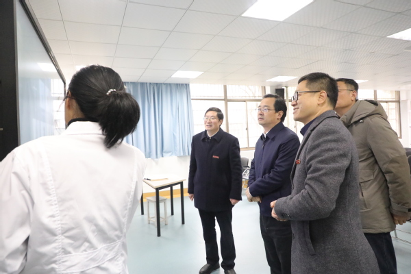2月17日,市政府副市长李宁、副秘书长柴志强一行到我校走访调研,校党委书记徐须实、校长吕延文陪同。