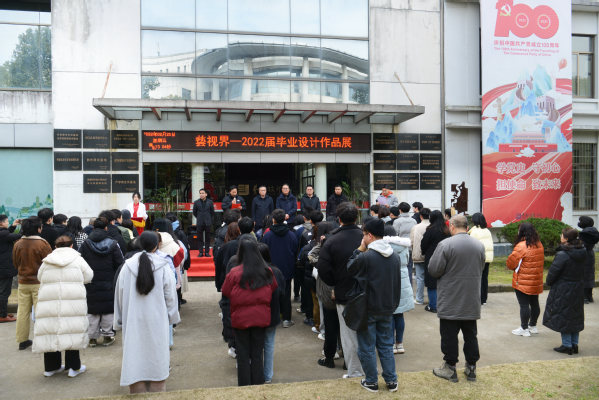 2月25日,艺术设计学院2022届“艺·视界”毕业设计作品展在艺术设计学院隆重开幕。校党委委员、副校长何百通,校党委委员、宣传部部长孔庆红,艺术设计学院院长叶云龙、艺术设计学院党总支书记戚景云、嘉易文化董事长马惠兵、舒成通工作室负责人舒成通以及艺术设计学院师生代表出席了开幕式。