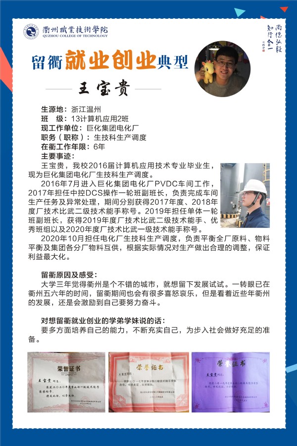 近年来,随着衢州经济社会的发展和就业环境的提升,有越来越多的学长学姐毕业后选择留在衢州就业创业,成为一名新衢州人。其中,更是涌现出不少优秀的典型。