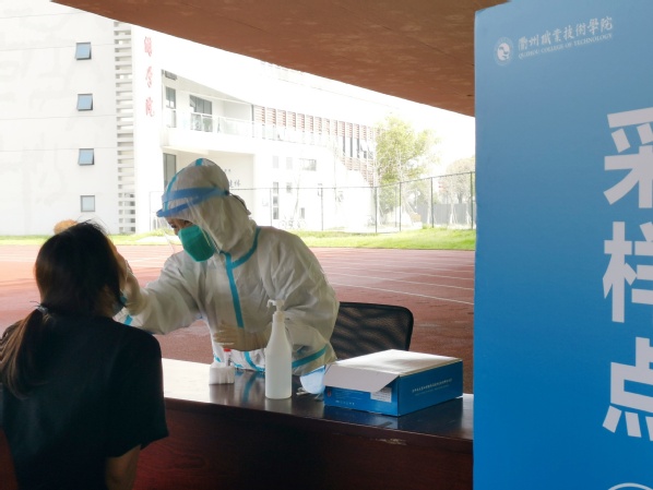 面对疫情,我校在两天来对留校师生进行全员核酸检测。医学院教师钱湛、刘慧萍、张沛情、宋伟霞等老师坚守岗位,规范有序高质量完成核酸检测工作。他们身着厚重的防疫服,重复着单一的动作,烈日下汗水浸透了衣裤。留校的教师和学生志愿者们也在有条不紊地登记信息、维护秩序,用耐心、细心、暖心守护着衢职院全体师生员工的生命安全和健康。