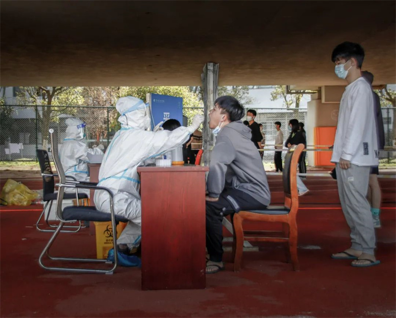 “艺疫——江南网页版艺术设计学院师生影像作品展”的内容非常丰富,有核酸检测有序排队、一线交警维持秩序、奋战一线的疫情工作者、志愿者、娃娃也戴上了口罩等,有几张照片还是一位学生在隔离点拍的。