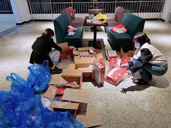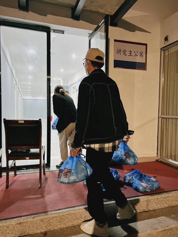 深夜派送物资,只为让同学们在寝室里待的舒适安心。