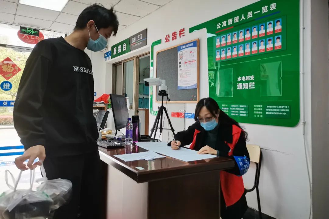 学生寝室封闭管理后,战区每位老师每天认真做好公寓值守工作。