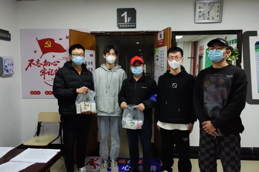 志愿者们搬来了信息工程学院为寝室解封后同学们日常用的医用口罩。