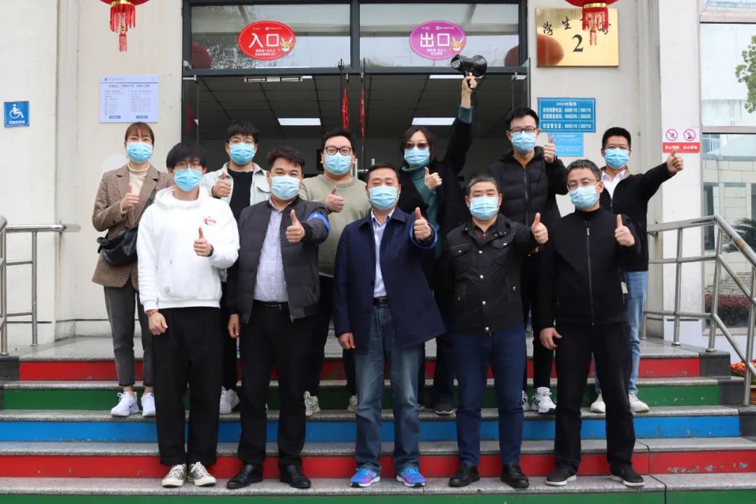 3月24日,二号战区驻校抗疫老师合影。寝室解封后,老师们集体在公寓门口欢迎同学们走出寝室