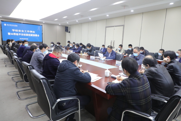 为进一步深化学校4A等级平安校园建设工作,3月29日下午,我校召开校园安全工作会议暨4A等级平安校园创建部署会。校党委书记徐须实,校党委班子成员吕延文、何百通、余建军、徐浪静、孔庆红、周帅参加,会议由余建军主持,相关职能处室、二级学院负责人参加会议。