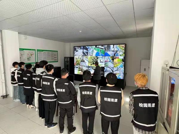 校安科王京平科长带领师生巡逻队员参观了学校监控室,并带领队员进行了第一次校园巡逻。