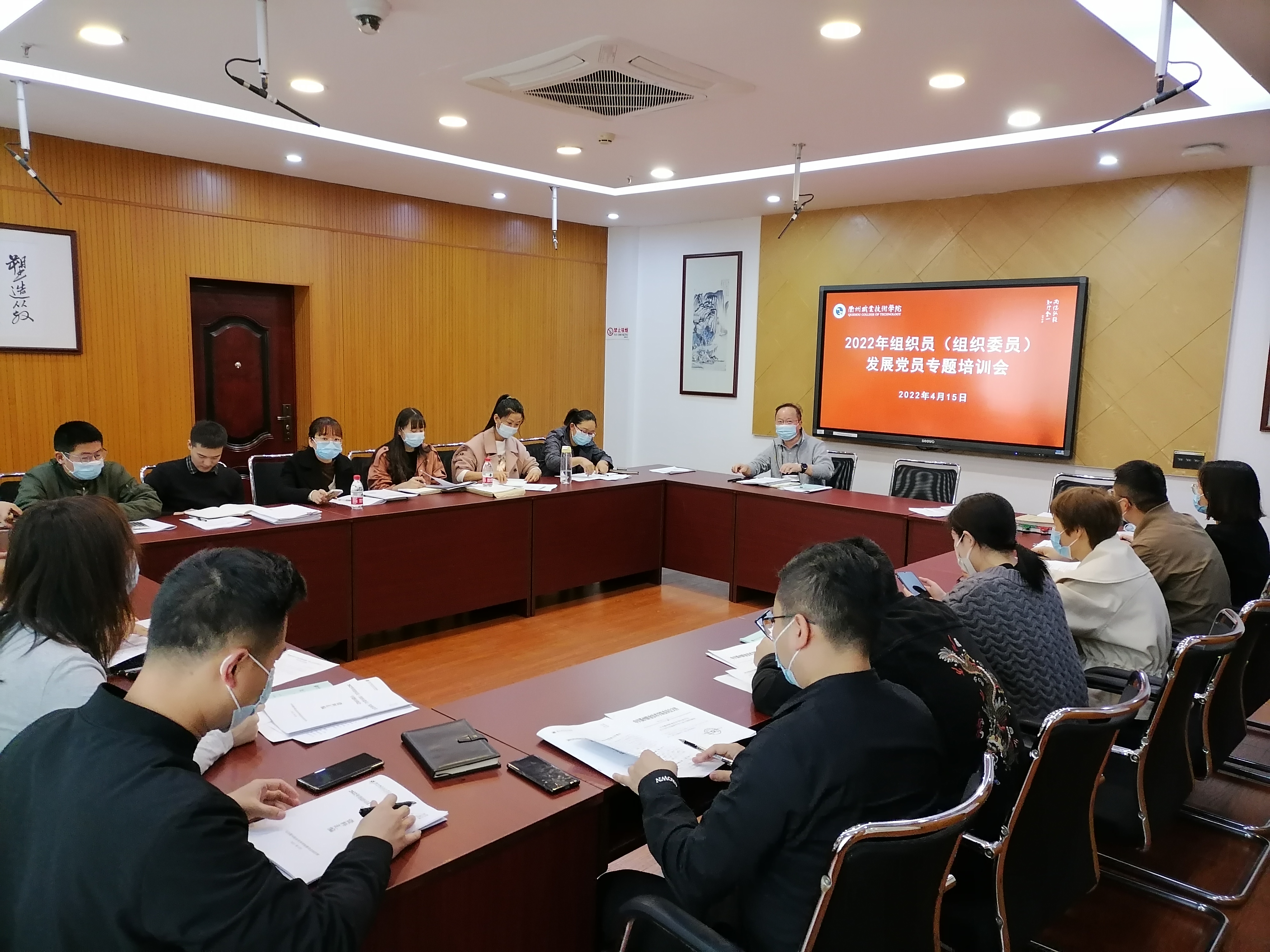 2022年4月15日下午,我校在教师发展中心举办了2022年组织员(组织委员)发展党员专题培训。全校专职组织员,机关各支部、直属党支部组织委员参加了培训,会议徐有强同志主持。