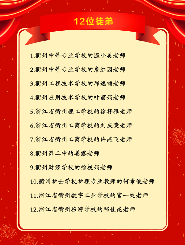 仙鹤股份有限公司周冬兴、衢州中等专业学校祝太富分别作为师徒代表进行发言。