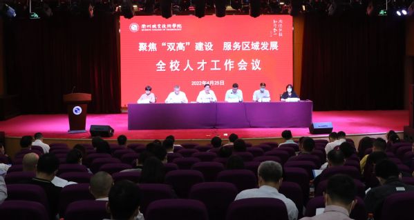 4月25日上午,我校召开人才工作会议,学习贯彻中央、省委和市委人才工作会议精神,分析学校人才工作现状,研究部署下一阶段人才工作,深入实施人才强校战略,全方位推动学校高质量发展。校党委书记徐须实出席会议并讲话,校长吕延文主持会议,党委委员、副校长何百通作人才工作报告,党委委员、副校长余建军、徐浪静,党委委员、组织部部长周帅出席会议。