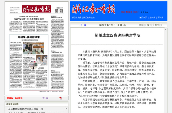 《浙江教育报》4月26日头版 报道 通讯员 欧阳洪萍