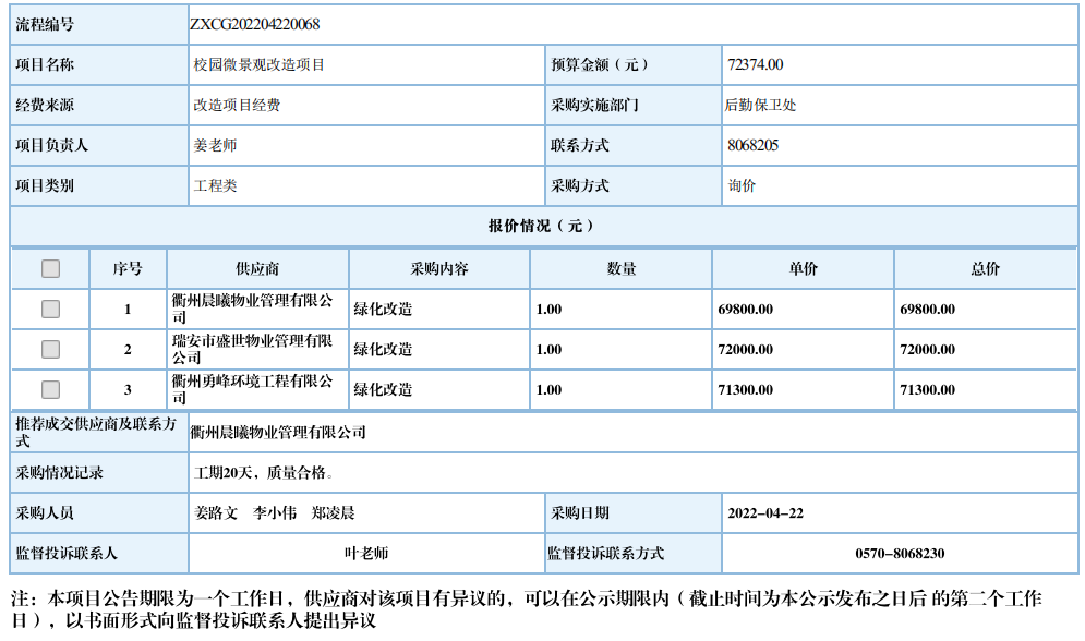 江南网页版校园微景观改造项目自行采购信息公示