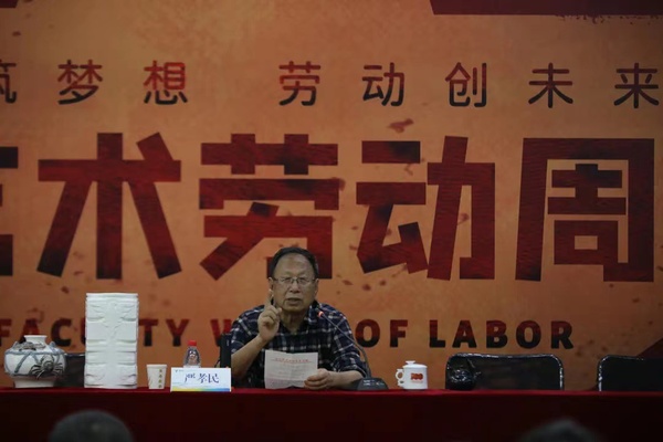 开幕式结束后,学院还邀请了全国五一劳动奖章获得者、浙江省第六届人大代表、高级工程师、浙江省工艺美术大师、浙江省陶瓷艺术大师严孝民,为同学们作了题为“加强劳动教育,弘扬工匠精神”的专题讲座。严老师在讲座上介绍分享了自己工作奋斗经验,并结合自身创作作品讲述了艺术构思技巧,同时向同学们提出了以下几点期望要求:一是学校是知识的源泉、人生的基础,希望同学们抓住有限的在校时间,好好学习、丰富知识;二是希望同学们能博览群书,形成大思维,既继承前辈,又逐步建立起自身艺术创作的独特风格;三是希望同学们要学会抓住人生不同时期的机会,在机会中实现自己的理想。